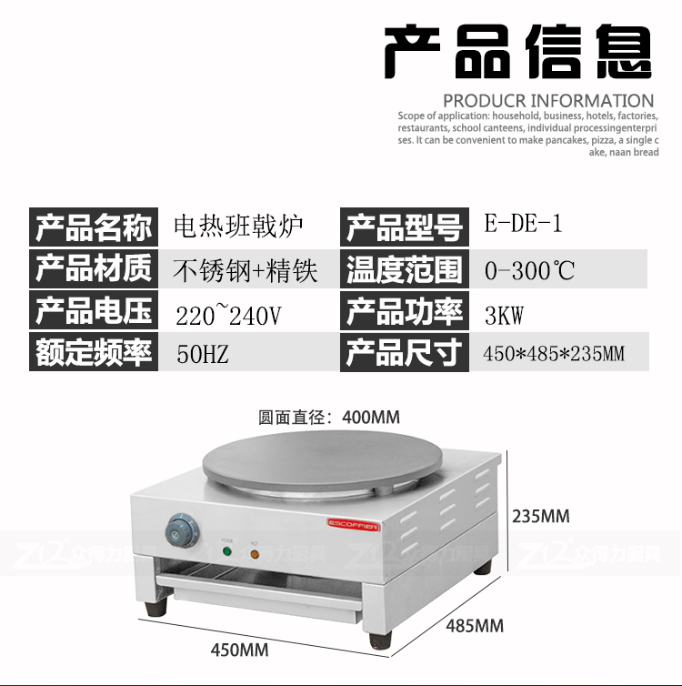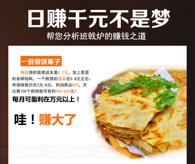 班戟爐是一種恒溫加熱,速熱快的美食設(shè)備,整機(jī)外殼采用優(yōu)質(zhì)不銹鋼材質(zhì),板材厚,加熱盤采用生鐵鍛造,表面光滑,食品級(jí)不粘涂層拋光處理,可加工制作各種煎餅。