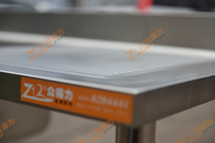 眾得力廚具高端白鋼品質,單星瀝水臺,單星瀝水池,整體采用201 1.2板材,一體拉伸星盆,板材整體沖壓一次成型,無死角,一級板材,紋路清晰有序,光澤度好,做工精細。