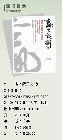 盡管我與本書作者阮子文律師至今尚未謀面,但我通過閱讀本書,已經(jīng)實(shí)實(shí)在在地感悟到,這是一位執(zhí)業(yè)不算長(zhǎng)但思維卻不簡(jiǎn)單、資歷不算深但經(jīng)歷卻不平凡、名氣不算大但業(yè)績(jī)卻不一般的律師。因?yàn)楸緯髡咴跁?,通過自己的執(zhí)業(yè)經(jīng)歷和感悟,對(duì)談判業(yè)務(wù)與律師的技能進(jìn)行了深入而全面的分析和研究,并將談判業(yè)務(wù)置于律師業(yè)務(wù)發(fā)展的最高境界。