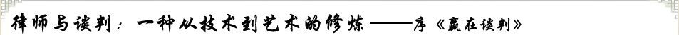 實(shí)際上,這是一部由新銳編輯策劃、新銳律師寫作共同完成的書稿。應(yīng)當(dāng)說,策劃是成功的,寫作是出色的。因?yàn)樗麄儗⒙蓭熍c談判的關(guān)系,做了一回精美的演繹與解剖。