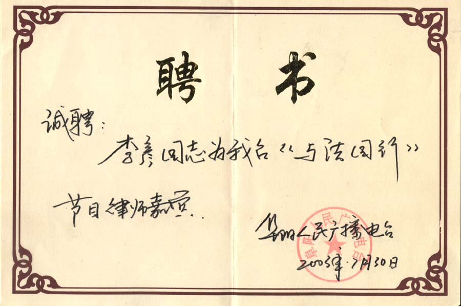 廣播電臺(tái)聘書(shū)