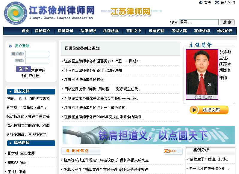 江蘇圓點(diǎn)律師事務(wù)所是經(jīng)江蘇省司法廳批準(zhǔn)成立的市司法局直屬合伙制律師事務(wù)所,現(xiàn)有資深律師三十余名,行政人員四名。圓點(diǎn)所座落在風(fēng)景秀美的云龍山腳下,擁有四百多平方米的現(xiàn)代化辦公用房,配備有各項(xiàng)辦公設(shè)施、通訊工具及互聯(lián)網(wǎng)絡(luò)。 圓點(diǎn)所在用人機(jī)制上提倡匯聚各方精英,共謀宏偉大業(yè)。在現(xiàn)有人員中,既有有著深厚的法律理論造詣的學(xué)院派律師,又有在各個業(yè)務(wù)領(lǐng)域?qū)嵺`經(jīng)驗(yàn)豐富、各有所長的專業(yè)化律師,還有海外留學(xué)歸來的海歸派律師。圓點(diǎn)所在管理機(jī)制上采取民主管理,科學(xué)決策的方針。隨著圓點(diǎn)所管理結(jié)構(gòu)的不斷完善,律師隊(duì)伍正在不斷壯大。 “鐵肩擔(dān)道義,以點(diǎn)圓天下”是圓點(diǎn)人的執(zhí)業(yè)宗旨。維護(hù)法律的尊嚴(yán),維護(hù)客戶的合法權(quán)益,是圓點(diǎn)人的責(zé)任,恪守職業(yè)道德,遵守執(zhí)業(yè)紀(jì)律,提供優(yōu)質(zhì)高效的法律服務(wù),為客戶排憂解難,是圓點(diǎn)人的追求。 “ 專業(yè)、誠信、優(yōu)質(zhì)、高效” 是圓點(diǎn)人永遠(yuǎn)不變的作風(fēng)。 圓點(diǎn)所建所伊始,針對律師業(yè)內(nèi)只將律師業(yè)務(wù)局限為訴訟案件、個個都是“消防隊(duì)員”的現(xiàn)狀,制定了立足于訴訟案件,努力開拓非訴訟案件業(yè)務(wù)的宗旨與發(fā)展理念,現(xiàn)已基本完成了律師業(yè)務(wù)由“訴訟型”向“經(jīng)營風(fēng)險(xiǎn)防范型”進(jìn)而發(fā)展成為全面參與客戶經(jīng)營管理、推動客戶經(jīng)營發(fā)展的“促進(jìn)發(fā)展型”的轉(zhuǎn)化,形成了既防范各類經(jīng)營管理風(fēng)險(xiǎn),又促進(jìn)企業(yè)經(jīng)濟(jì)發(fā)展的新的法律服務(wù)格局。 律師事務(wù)所主任張孝明,系徐州律師協(xié)會理事、徐州仲裁委員會仲裁員,執(zhí)業(yè)十年來,曾多次被評為徐州市優(yōu)秀律師,具有敏銳的思考能力、應(yīng)變能力和扎實(shí)的工作作風(fēng),他所承辦的案件受到普遍贊譽(yù)。主要從事刑事辯護(hù)、房地產(chǎn)訴訟及其他非訴訟法律事務(wù)。現(xiàn)擔(dān)任十多家黨政機(jī)構(gòu)及社會團(tuán)體、企業(yè)的常年法律顧問,提供了全局性、前瞻性的法律建議及優(yōu)質(zhì)、周到的法律服務(wù),給予了顧問單位有力的法律支持。為徐州電視臺“徐州警視”、“社會大觀”、“生活相對論”欄目的特邀嘉賓。 立足于點(diǎn),觀萬象之圓,能通古今之事,曉萬物之理。以圓點(diǎn)觀萬象,萬物有序,種種正常,事事在理。圓點(diǎn)律師愿以更專業(yè)的法律服務(wù),伴每一位客戶花好月圓,人月雙圓,不斷地從成功走向更大的成功!
